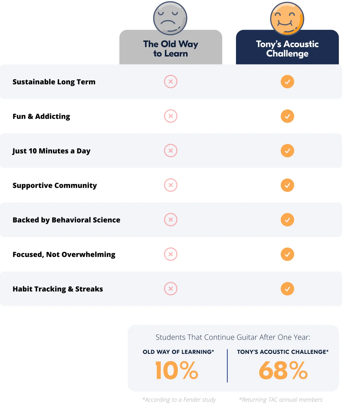 Learn songs fast by focusing only on the 5 guitar skills used in almost every song you'd ever want to play.